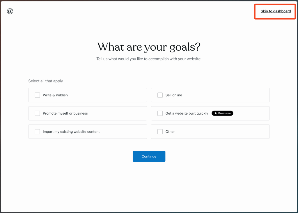 After that, skip these two setup pages to go straight to the dashboard